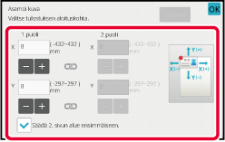 Kosketa numeroarvonäyttöä, jossa näkyy marginaalin siirron alue etupuolella tai taustapuolella, ja syötä alue numeronäppäimillä.