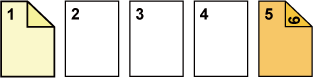 ![]() Tekee alkuperäisen 1. ja 2. sivusta etukannen kaksipuolisena kopiona sekä 6. sivusta takakannen yksipuolisena kopiona. * Viidettä alkuperäistä sivua ei kopioida. |