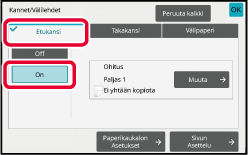 Aseta alkuperäinen automaattisen syöttölaitteen asiakirjan syöttötasolle tai valotuslasille.Kosketa ensin [Muut]-näppäintä ja sitten [Kalvojen Välilehdet]-näppäintä.