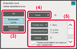 Aseta alkuperäinen automaattisen syöttölaitteen asiakirjan syöttötasolle tai valotuslasille.Kosketa [Muut]-näppäintä ja sitten [Mukautettu kuva]-näppäintä.
