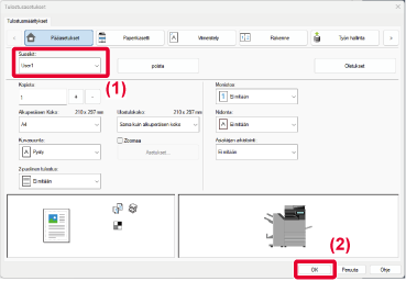 Asetukset voidaan tallentaa miltä tahansa tulostinajurin ominaisuuksien