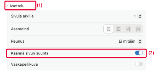 kääntää 180 astetta niin, että se voidaan tulostaa oikein paperille,