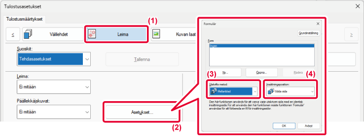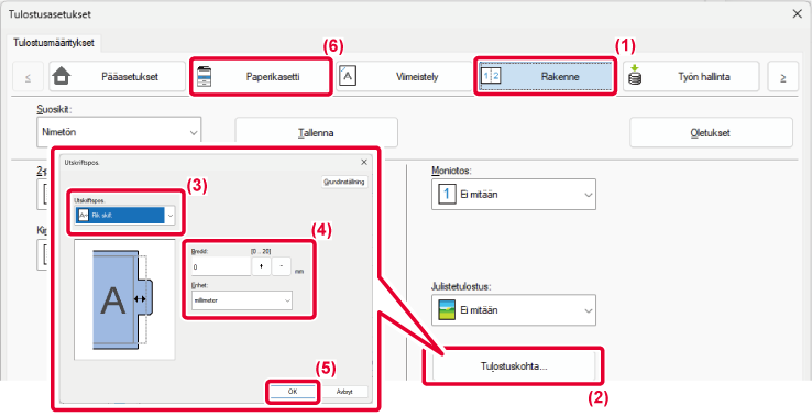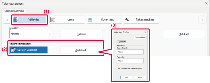 sisällön myös välilehdelle. Valitse tarvittaessa paperikasetti ja