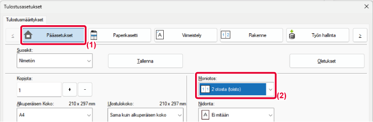 2, jäljennöskopiota muistuttava tulostetulos saadaan antamalla tulostuskäsky