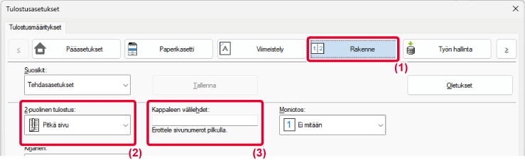 Valitse tulostinohjaimen ominaisuudet -ikkunan [Välilehti]