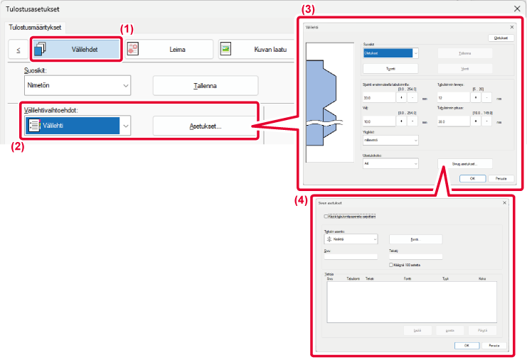 -painikkeella. Valitse lisäksi välilehtipaperin