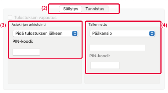 arkistoidun asiakirjan tulostusta, käyttäjän tunnistustietojen lisäksi