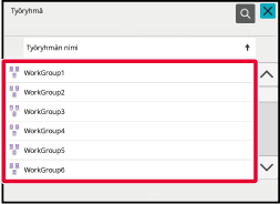 Siirry verkkokansioon.Kosketa sen työryhmän näppäintä, jota haluat käyttää vaiheessa 3 / "LAITTEEN ASETUKSISSA MÄÄRITETYSSÄ VERKKOKANSIOSSA OLEVAN TIEDOSTON TULOSTAMINEN".