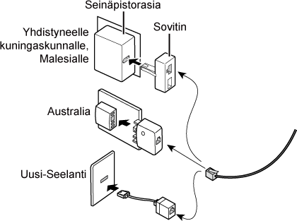Kun laitetta halutaan käyttää faksina, kytke puhelinlinja