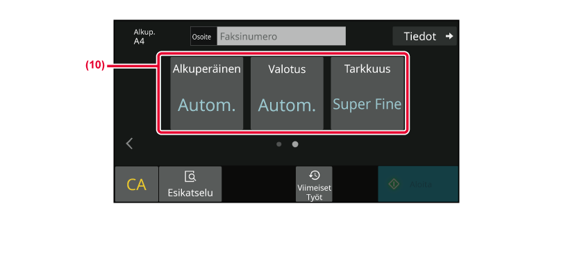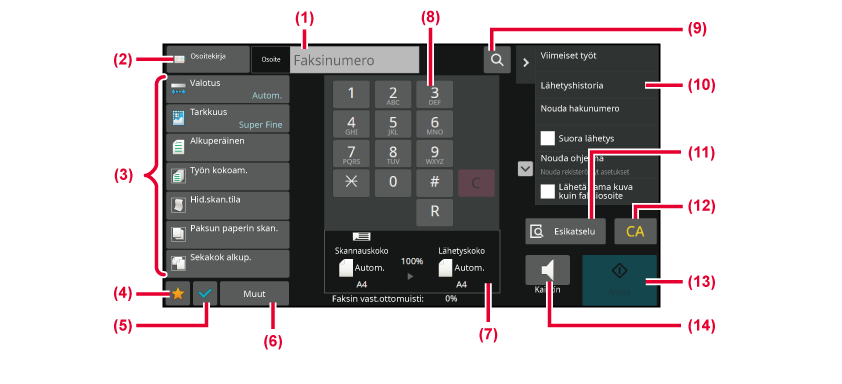 - Näyttää toiminnot, jotka ovat käytettävissä faksitilassa.