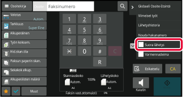 AUTOMAATTINEN SYÖTTÖLAITEMääritä kohteen faksinumero ja kosketa [Suora lähetys] tehtäväpaneelissa.
