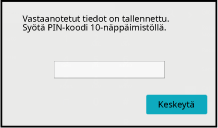 tulostamista. Faksien tulostamiseksi on syötettävä PIN-koodi. Kun