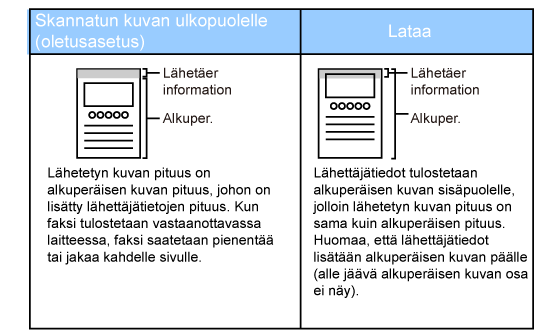 kohteen nimi) lisätään automaattisesti jokaisen lähetetyn faksisivun