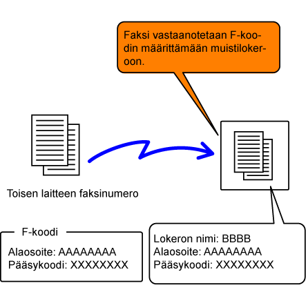 käyttävä faksi vastaanotetaan, se tallennetaan F-koodilla suojattuun muistilokeroon.