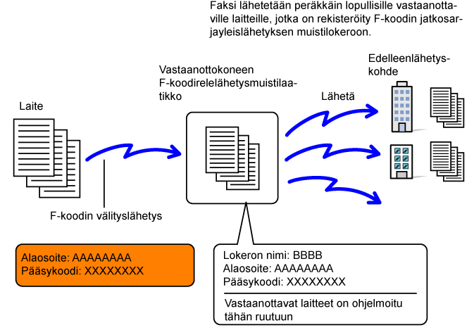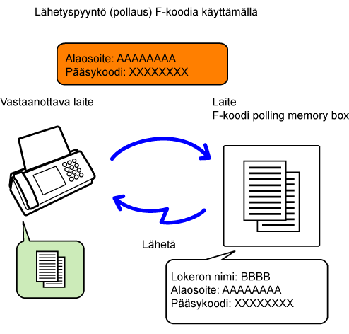 Lähettämällä faksin F-koodin muisti lokeroon