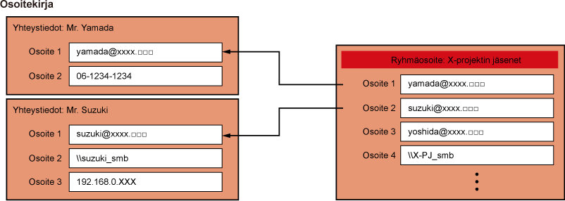 sähköposti-, Internet-faksi ja suoran SMTP-osoitteita.