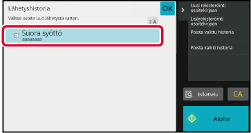 OSOITTEIDEN TALLENTAMINEN FAKSIN TAI KUVAN LÄHETYSLOKEISTA