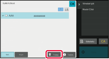 osoiteluettelonäytössä osoite, jonka haluat peruuttaa ja kosketa