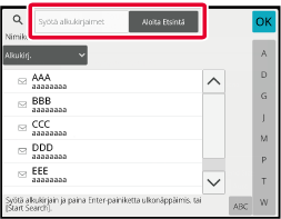 Kun käytät osoitekirjaa Easy Scan -näytössä tai sähköpostitilassa,