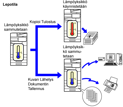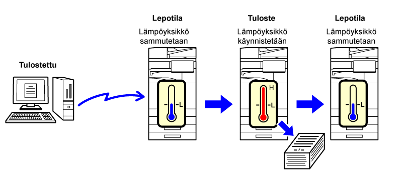 Työt, joita ei tulosteta, suoritetaan lämmitysyksikkö
