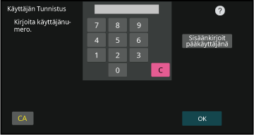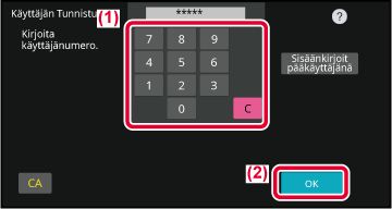 Syötä käyttäjänumero (5–8 numeroa) numeronäppäimillä.