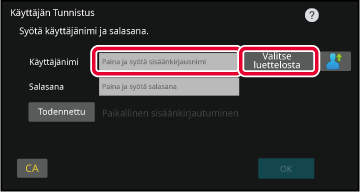 Valitsemalla luettelosta Kosketa [Valitse luettelosta]-näppäintä ja valitse käyttäjänimi Käyttäjäluettelo-näytöstä.