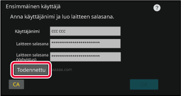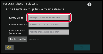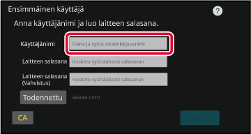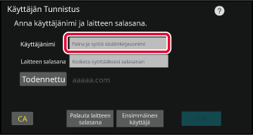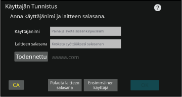 Syöttäminen näytön näppäimistölläJos käyttäjänimen rekisteröintiä ei ole suoritettu asetustilassa,
