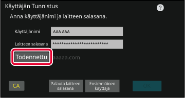 laitteen pääkäyttäjältä tai LDAP-palvelimen pääkäyttäjältä saadulla käyttäjänimellä