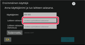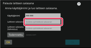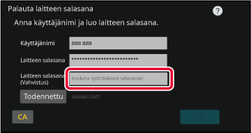 Syötä laitteen salasana vaiheessa 3 kohdassa ”Laitteen