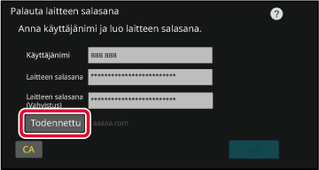 Laitteen salasana on laitteen autentikoinnin salasana.