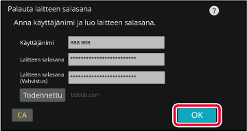 ". Kun on syötetty, kosketa [OK]-näppäintä.