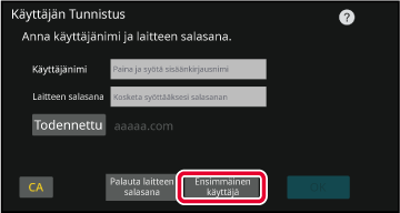 Napauta [Ensi kertaa käyttäjä] -näppäintä.
