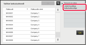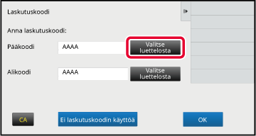 Kun laskutuskoodin syöttöikkuna näytetään, kosketa pääkoodin [Valitse luettelosta]-näppäintä.