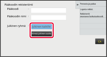 Rekisteröi pääkoodi suorittamalla vaiheet 4–7.Kosketa kohtaa [Lopeta rekist.] toimintopaneelissa.
