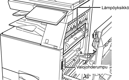 Jos tapahtuu paperitukos, kosketusnäyttöön ilmestyy