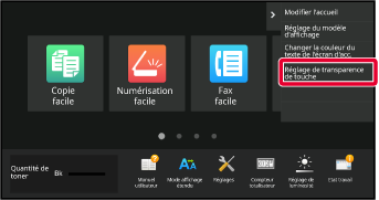 Ouvrez le panneau de sélection sur l'écran d'accueil et appuyez sur [Réglage de transparence de touche].