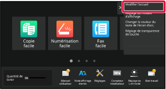 Appuyez sur [Réglages système] → [Réglages de l'écran d'accueil] → [Fond de page], puis appuyez sur la touche [Modifier].