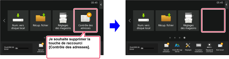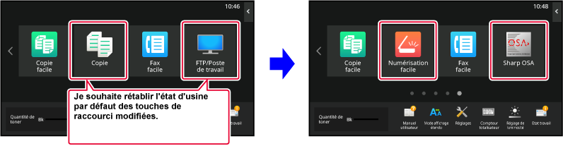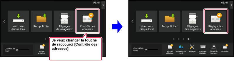 Les réglages sont enregistrés dans la machine et ils sont appliqués.Pour modifier une image de touche de raccourci