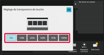 Les réglages sont enregistrés dans la machine et ils sont appliqués.Vous pouvez modifier la transparence des