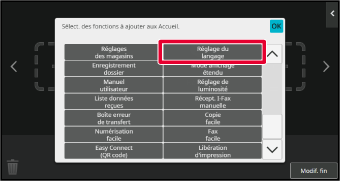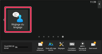 Appuyez sur la touche [Réglage du langage] dans l'écran d'accueil.
