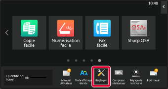 Touchez la touche [Réglages] dans l'écran d'accueil.