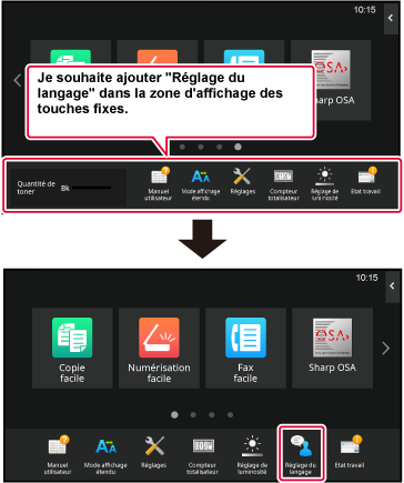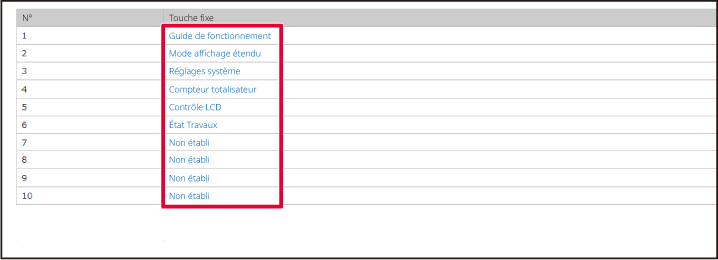Les réglages sont enregistrés dans la machine et ils sont appliqués.Vous pouvez modifier les touches fixes.