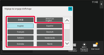 Ces réglages peuvent nécessiter que vous saisissiez votre mot de passe utilisateur. Si vous n'avez pas réalisé l'authentification utilisateur, vous devez saisir le mot de passe administrateur.Sélectionnez la langue que vous souhaitez modifier dans la liste.