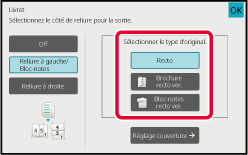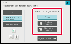 Appuyez sur la touche [Recto], [Brochure recto ver.] ou [Bloc-note recto ver.] en fonction du document original.