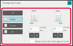 Appuyez sur l’affichage de la valeur numérique indiquant la zone de décalage de marge sur le recto ou le verso et saisissez la zone en utilisant les touches numériques.