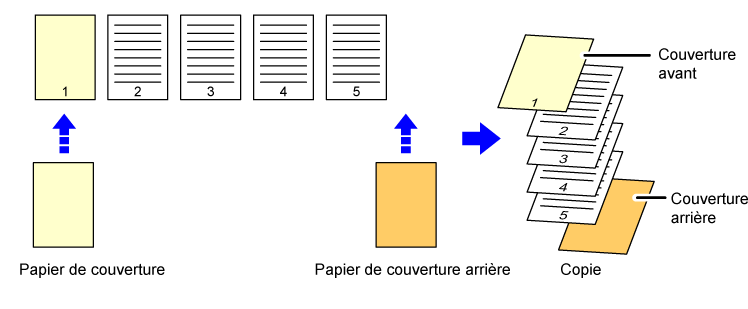 ![]() Insère une couverture avant au début des copies et réalise une copie recto verso sur les cinquième et sixième pages originales pour la couverture arrière. |