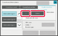 Le nombre total de feuilles d'insertion s'affiche à côté de la touche [Entrer]. Répétez ces étapes pour tous les intercalaires.