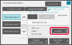 Modifiez les réglages des couvertures et des feuilles d'insertion.