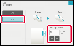Appuyez sur la touche [Autres], puis sur la touche [Copie sur onglets].