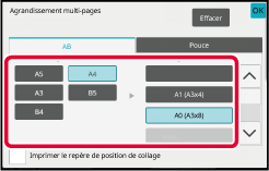 Sélectionnez l'onglet [AB] ou [Pouce] correspondant au format du document original pour la copie d'affiches, puis appuyez sur la touche qui correspond au format du document original.